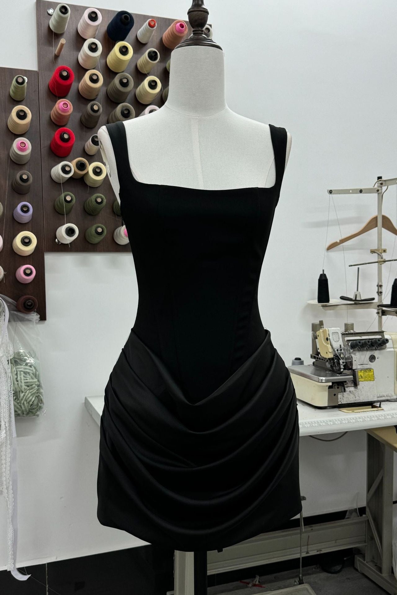 Turn heads in this draped corset mini dress, designed with a structured square neckline, adjustable straps, and a figure-hugging bodycon fit. The satin draped skirt adds a soft, sculpted shape, while the lace-up back lets you customize the perfect silhouette. Ideal for nights out, special occasions, and elegant events. Available in rich chocolate brown and classic black.