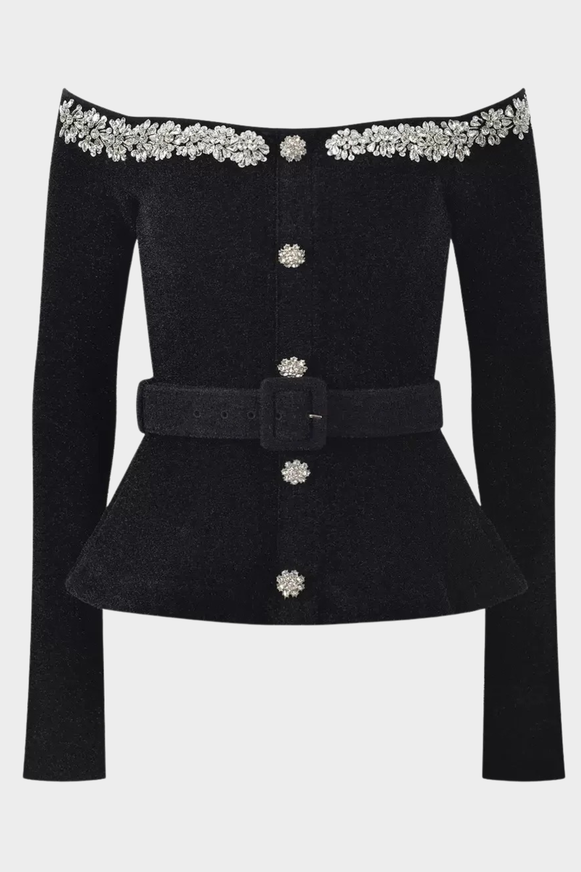 Elevate your winter style with our Embellished Off-Shoulder Knit Top, designed for elegant evenings and statement moments. This stunning piece features a wide off-shoulder neckline adorned with hand-crafted crystal embellishments, giving you a luxurious, refined glow.