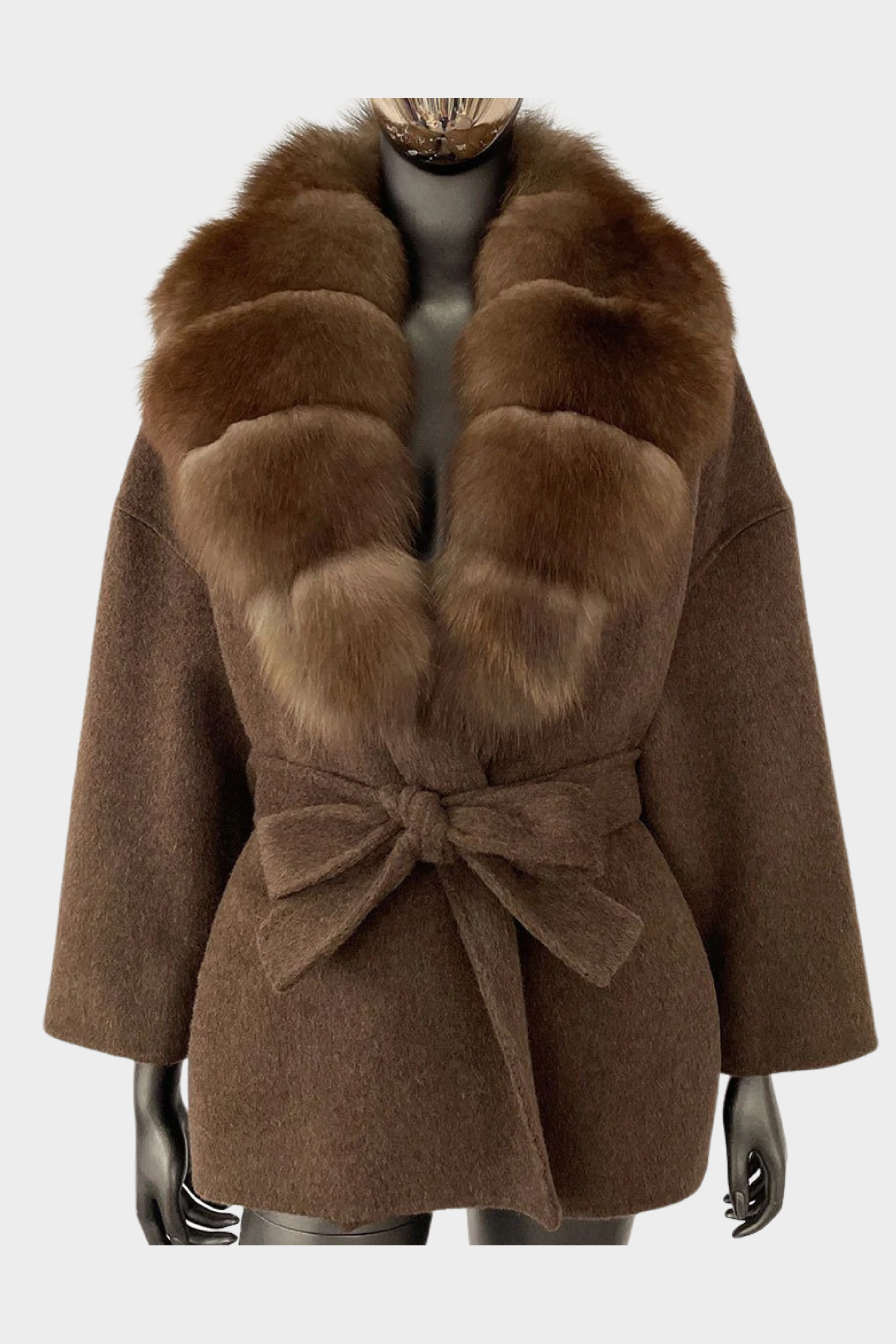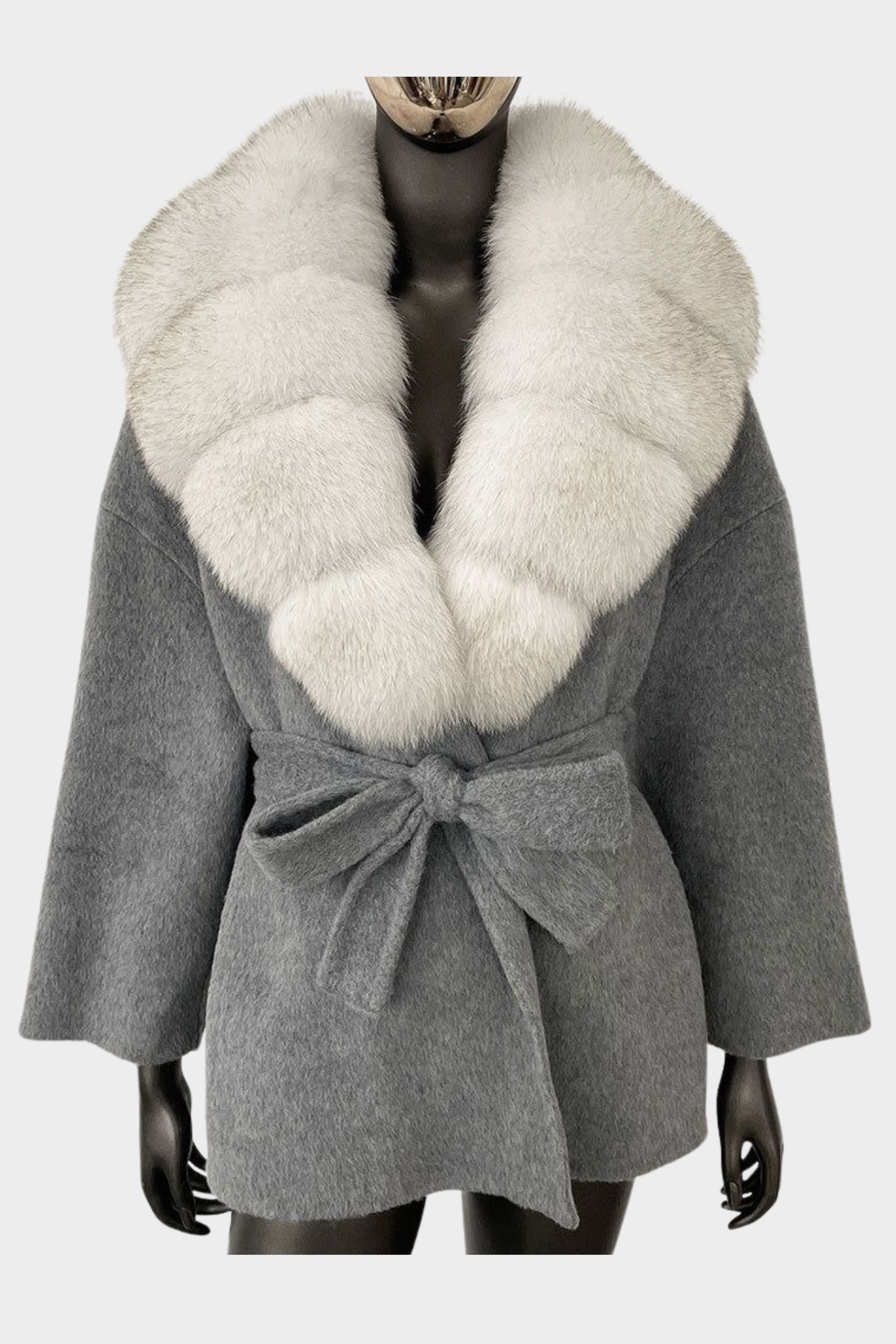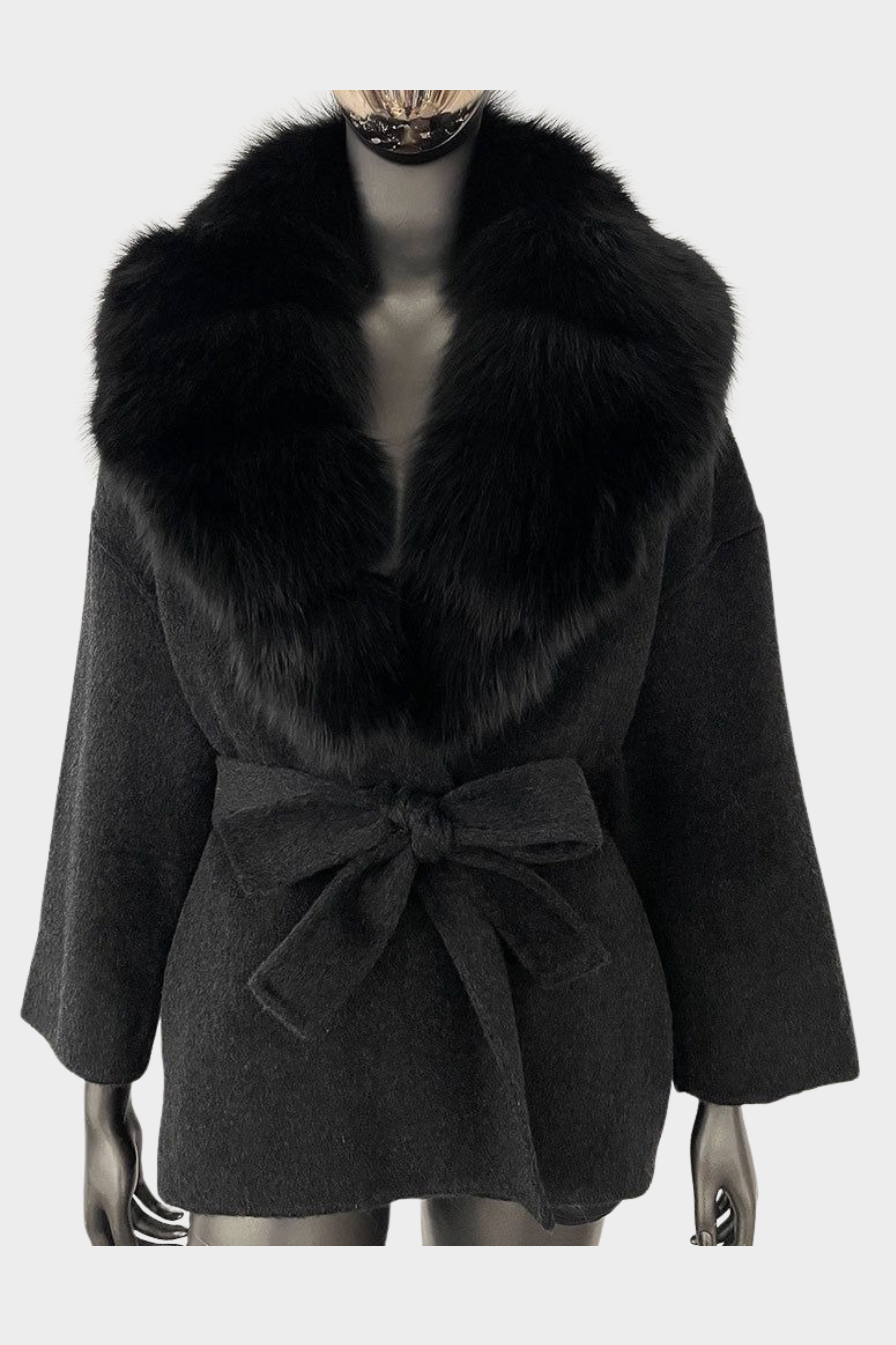 A luxurious winter statement coat designed with a soft wool-blend body and a dramatic oversized faux-fur collar. The long sleeves and clean straight cut give it a modern, elegant shape, while the matching tie belt cinches the waist for a flattering, feminine fit. Finished with plush faux-fur cuffs for added texture and warmth.