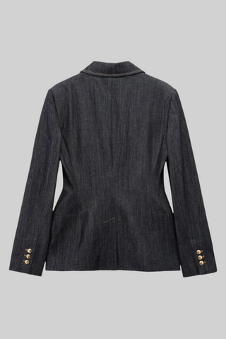 Belted Textured Tweed Suit Jacket – Elegant Button-Front Blazer with Pocket Detail
