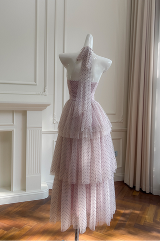Vintage Polka Dot Puffball Mini Dress Halter Neck Tie-Back & Built-In Underskirt