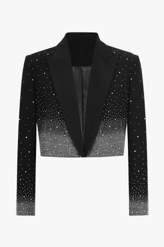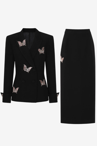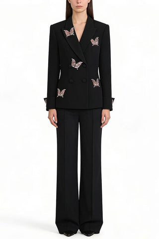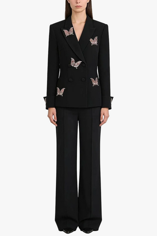 Structured Long Sleeve Tailored Blazer with Hand-Embellished Butterfly Detail