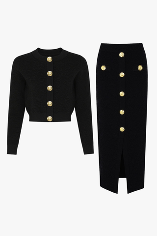 High Waist Straight Long Skirt with Embellished Detail and Structured Tailoring