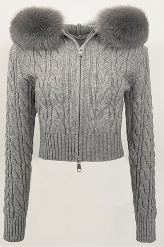 Embroidered Jacquard Jacket with Luxe Faux Fur Trim – Elegant Short Winter Coat