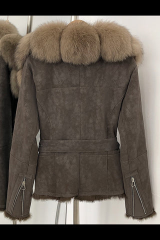 Luxury Shearling Jacket with Oversized Fur Collar, Zip Front and Tailored Fit