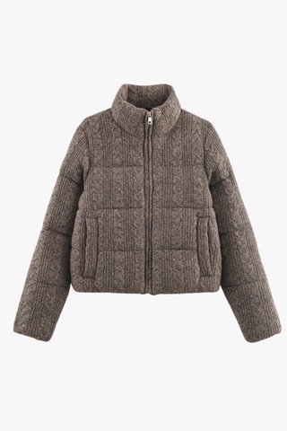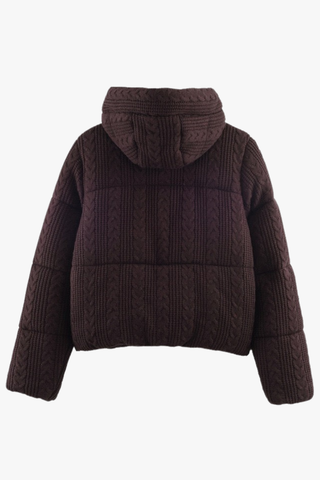 Cable Knit Puffer Jacket with Hood – Warm Padded Winter Coat, Soft Knit Fabric, Long Sleeve