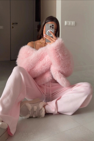 Crystal-Embellished Soft Wool Set – Cropped Jacket and Ruffled Mini Skirt