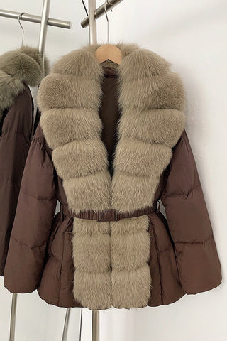 Tailored Ski Jacket with Belted Waist, Fur Details, and Long-Sleeve Design