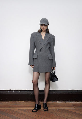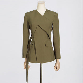 3-Piece Suit – Double-Breasted Blazer, Spaghetti Strap Crop Top & High-Waisted Shorts Set