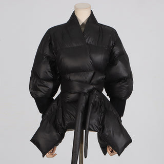 Casual Slim Fit Puffer Jacket with Belt - Women's Long-Sleeve Wrap Coat