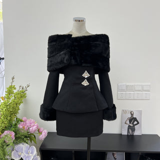 Knitted Two-Piece Set with Round Neck Peplum Cardigan and Midi-Long Mermaid Skirt