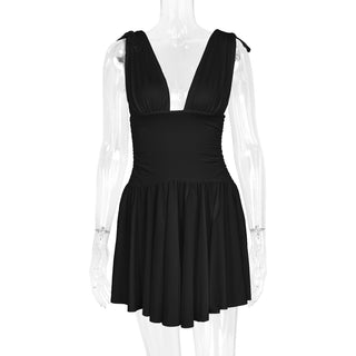 Sleeveless Knitted Mini Dress – Fitted Ribbed Bodice with Flared Ruffle Hem