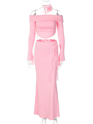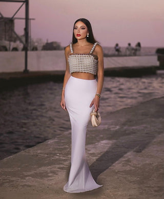 Black Rhinestone Chain Embellished Two-Piece Set: Cropped Top and Maxi Skirt