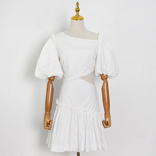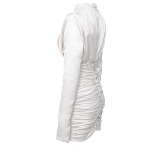 Elegant Long Sleeve Mini Dress with Fitted Silhouette and Button Accents