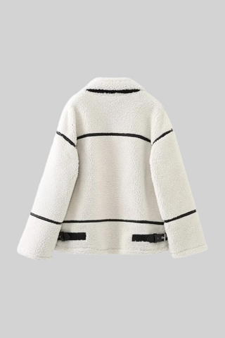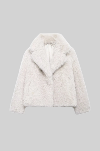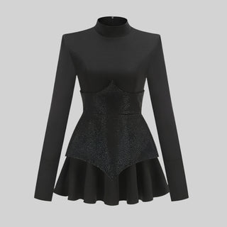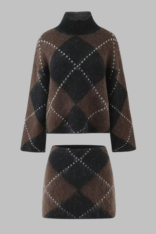 Two-Piece Wool Blend Set with Ruffled Collar Top and Flared Mini Skirt