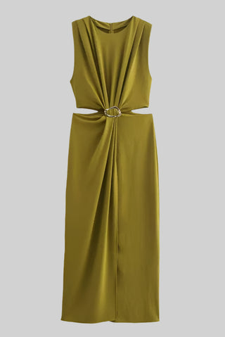 Short Sleeve Knitted Long Dress with Inner Slip – Flattering Fit & Button Detail