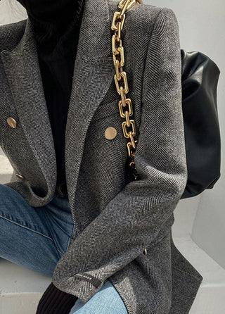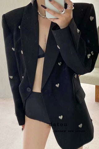 Statement Oversized Blazer with Metallic Heart Studs and Tailored Fit