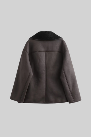Oversized Faux Suede Jacket with Shoulder Flap Detail and Elastic Hem