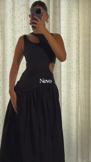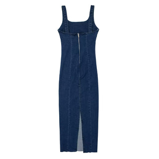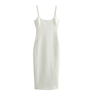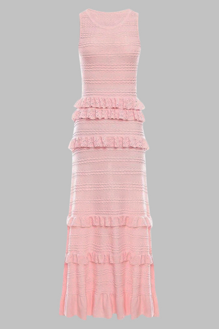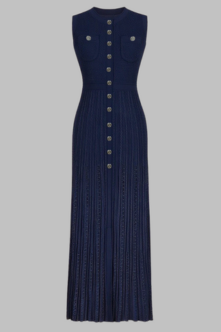 Elegant Sleeveless Textured Knit Long Dress with Button Front and Fitted Waistline