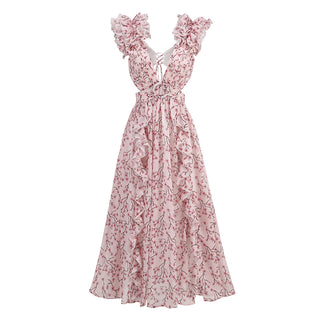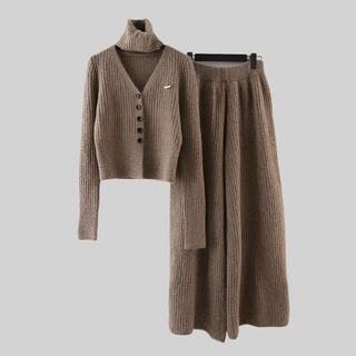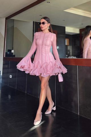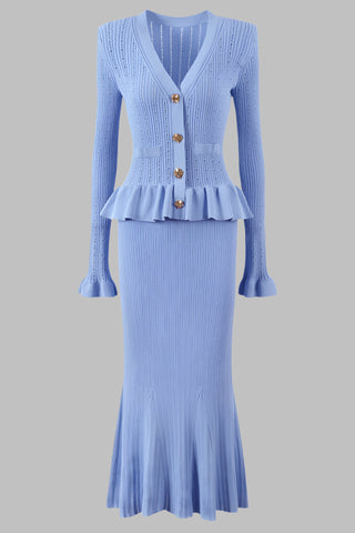 Knitted Long Midi Dress – Button-Up, Peplum Waist, Flared Long Sleeves