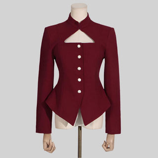 Elegant High-End Woven Long Sleeve Suit Jacket with Statement Buttons