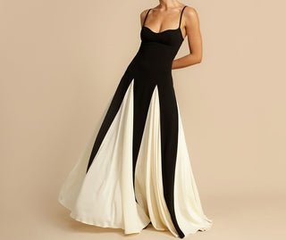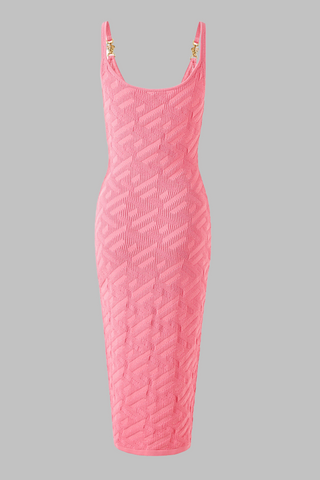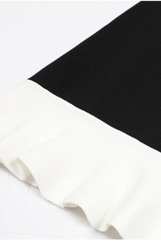 Black and White Patterned Knitted Sleeveless Mini Dress with Square Neckline