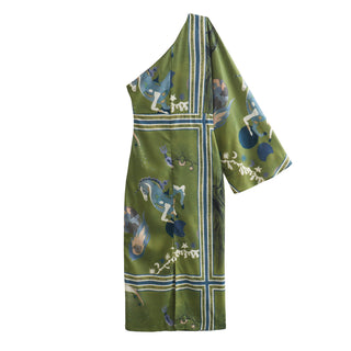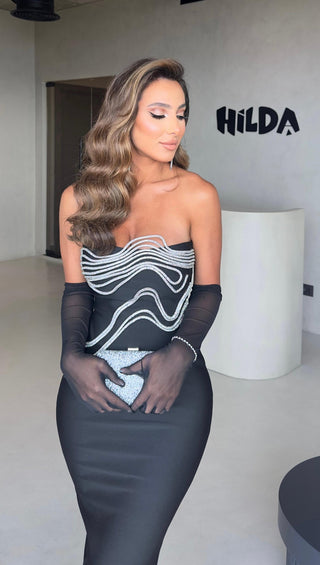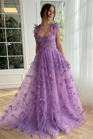 Strapless Lavender Beaded Long Crepe Dress with Fringe Embellishments