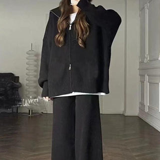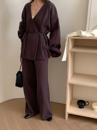 3-Piece Sport Wrap Lounge Set with Long Sleeve Crop Top, Halter Tank, and Wide-Leg Pants