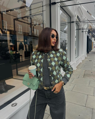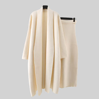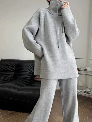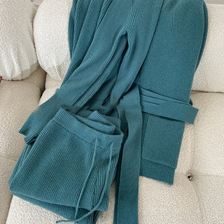 Gray Knitted V-Neck Sweater Comfy Set with Wide-Leg Pants (without Scarf)