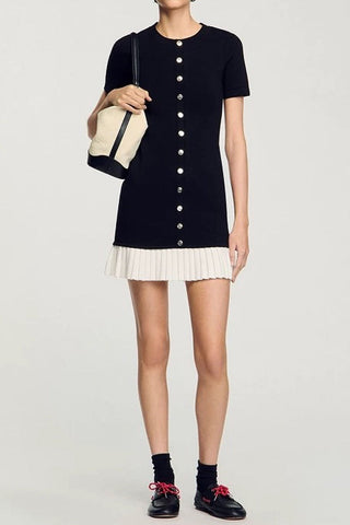 Knit Ribbed Button-Down Flare Maxi Dress with Fluted Cuffs – Long Sleeve Bodycon Elegant Style