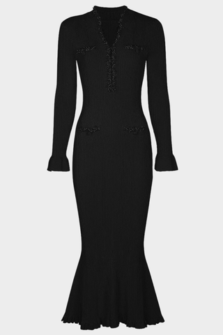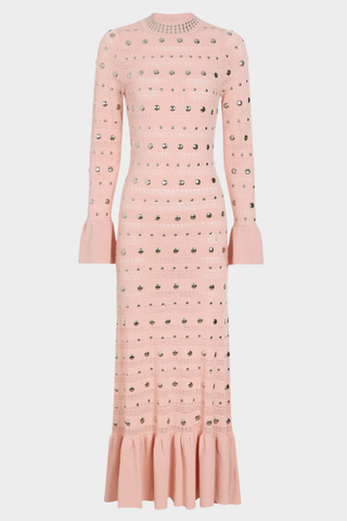 Studded Knit Long Dress – Elegant Long Sleeve Flared Cuff Evening Dress