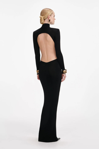 Long Sleeve Black Long Dress with Sequin Cutout Detailing and High Slit