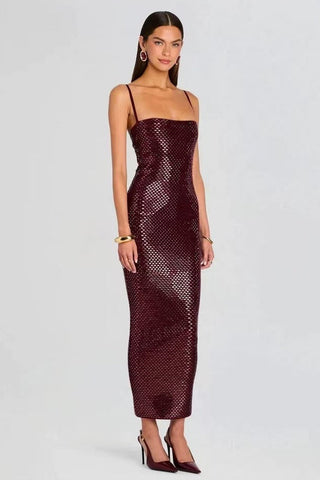 Luxury Rhinestone U-Neck Sleeveless Bandage Elegant Bodycon Fit Long Dress