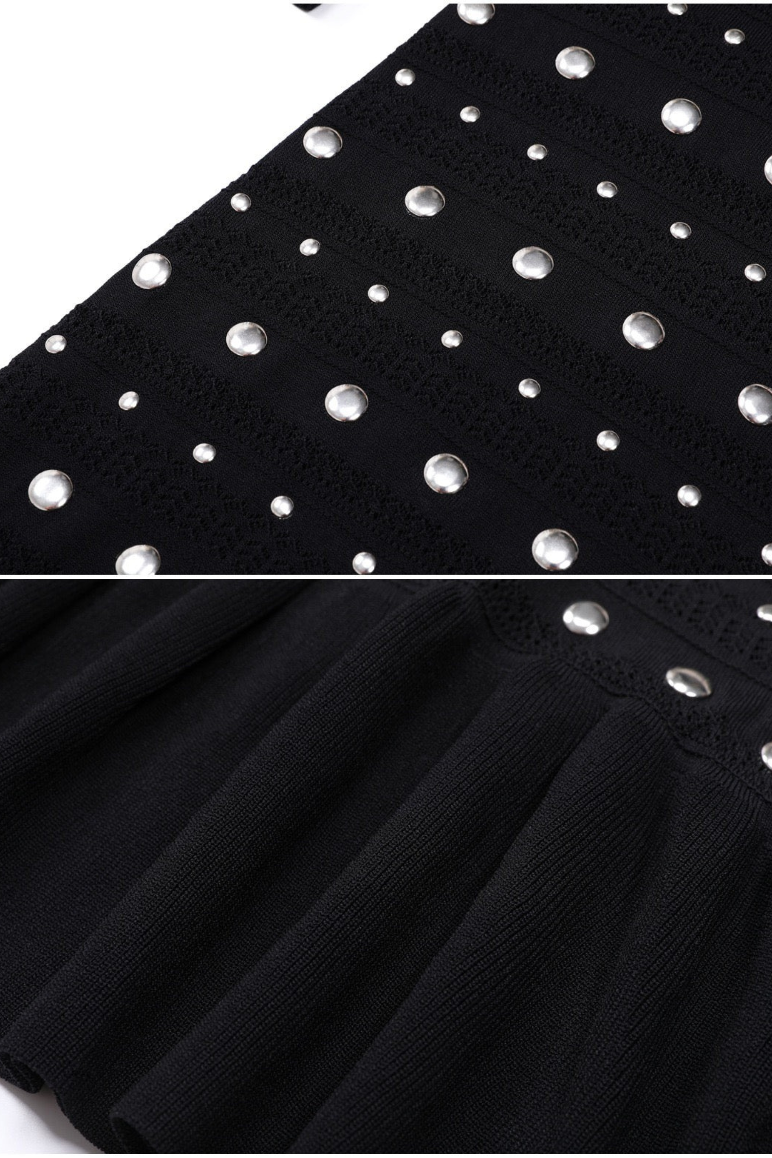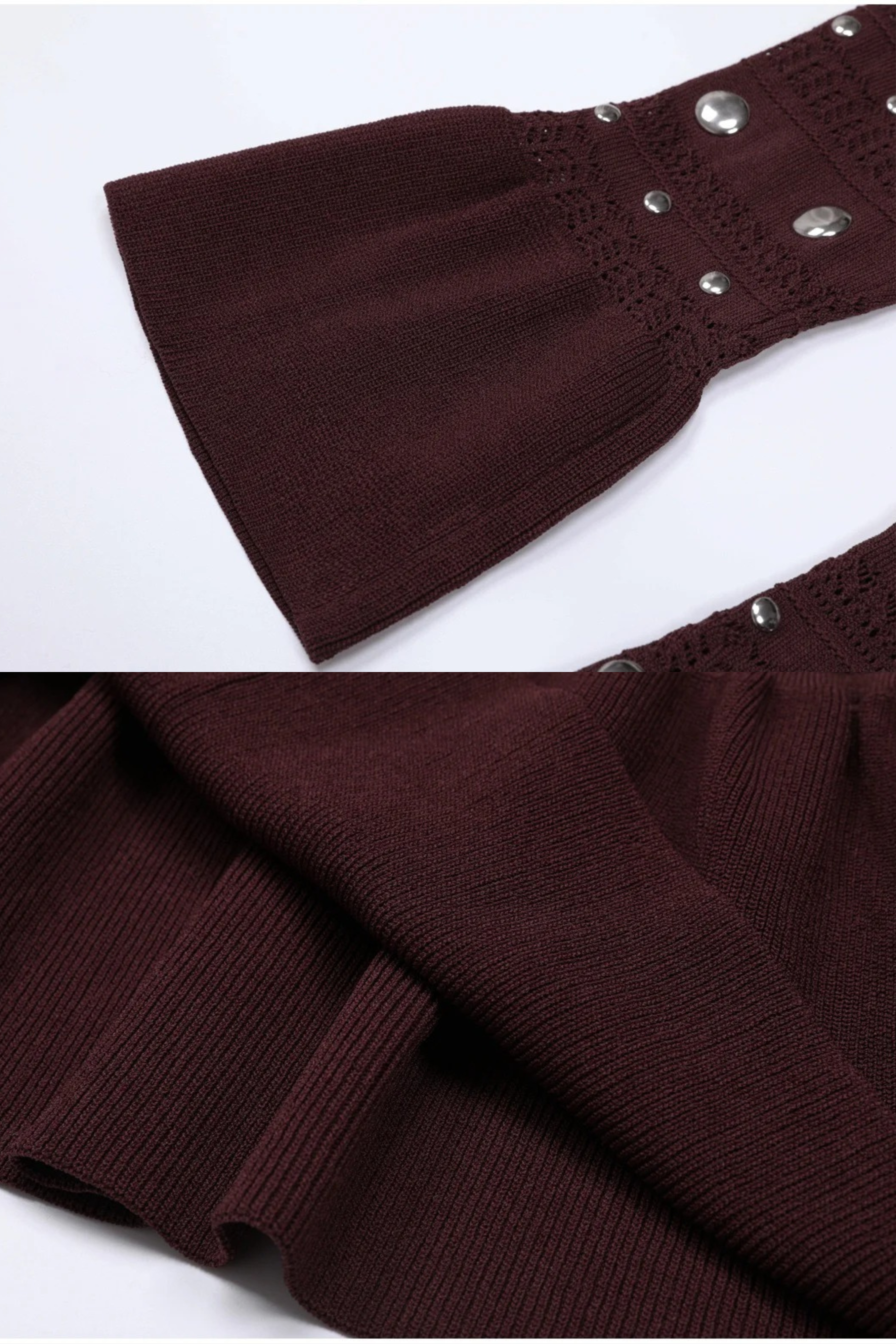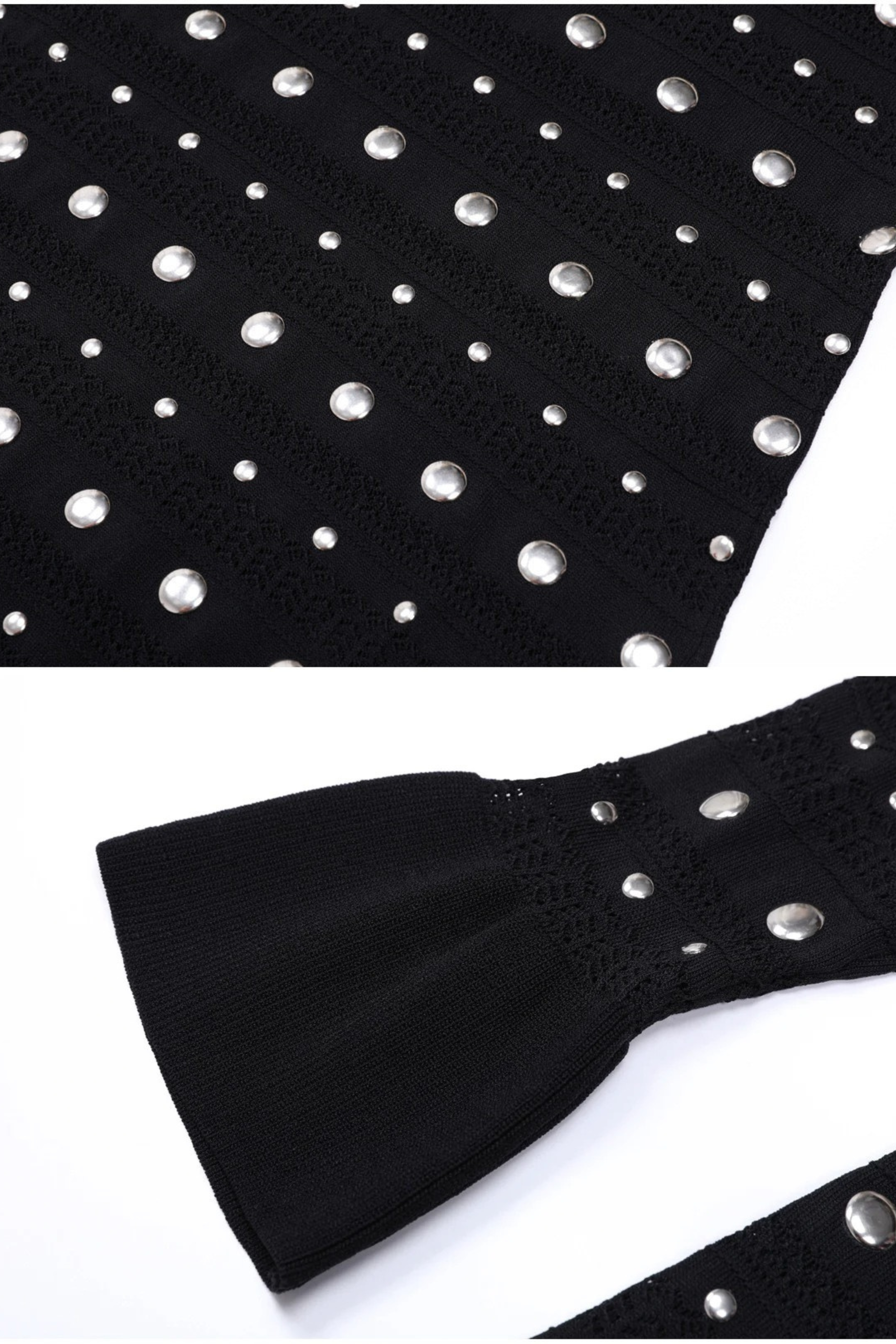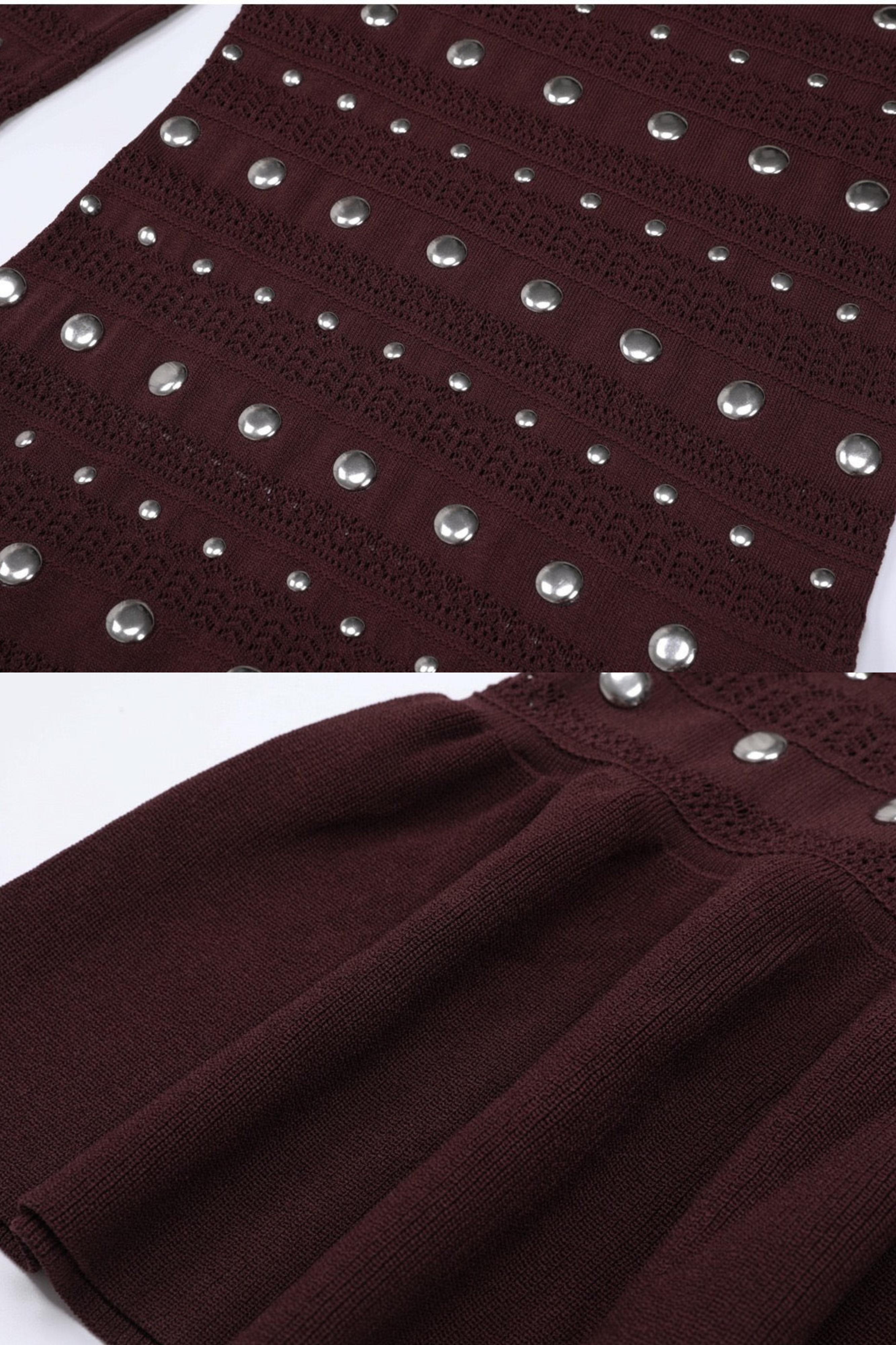 Studded Knit Long Dress – Elegant Long Sleeve Flared Cuff Evening Dress