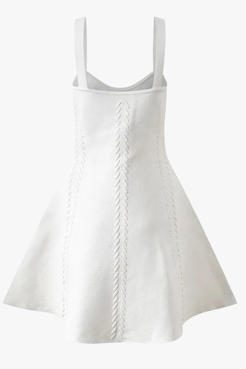 A refined statement piece designed to enhance your shape with effortless confidence. This sleeveless mini dress features a structured bodice with a gently flared skirt, creating a flattering and feminine look perfect for both day and evening wear.