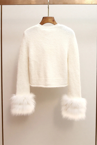 Embellished Pearl and Rhinestone Knit Cardigan with Matching Flared Midi Skirt Set