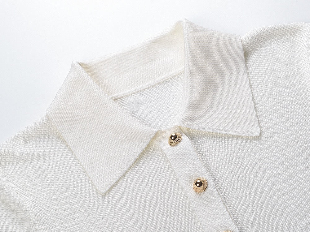 Long Sleeve Ribbed Knit Bodysuit with Collar & Button Front
