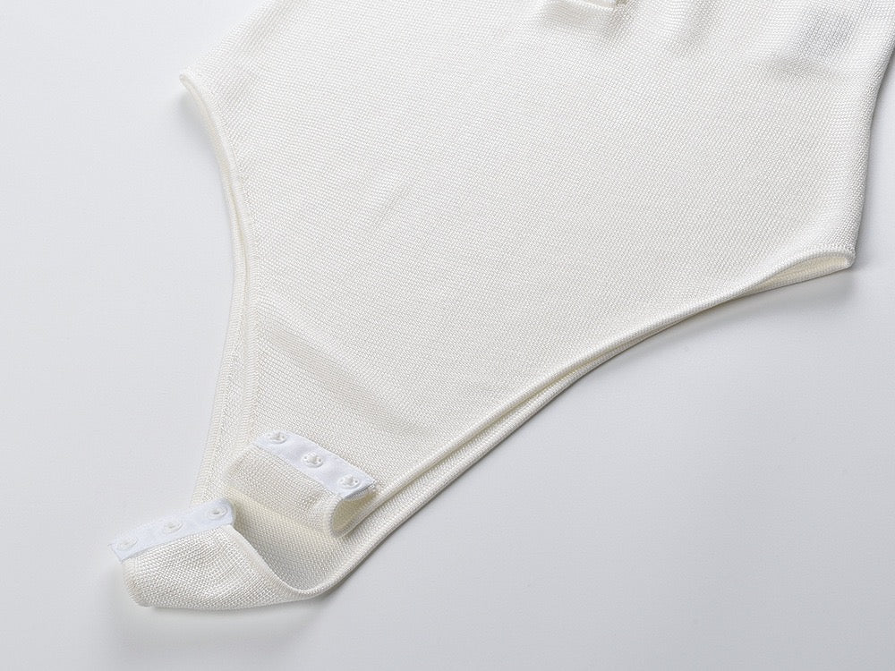 This knit bodysuit is designed with a structured collar, button-front detail, and long sleeves for a sleek and polished look. The stretchy ribbed fabric shapes the body comfortably while keeping a smooth, tucked-in finish all day. It features a secure snap closure for easy wear and a flattering fitted silhouette, making it perfect for styling with jeans, trousers, or skirts.