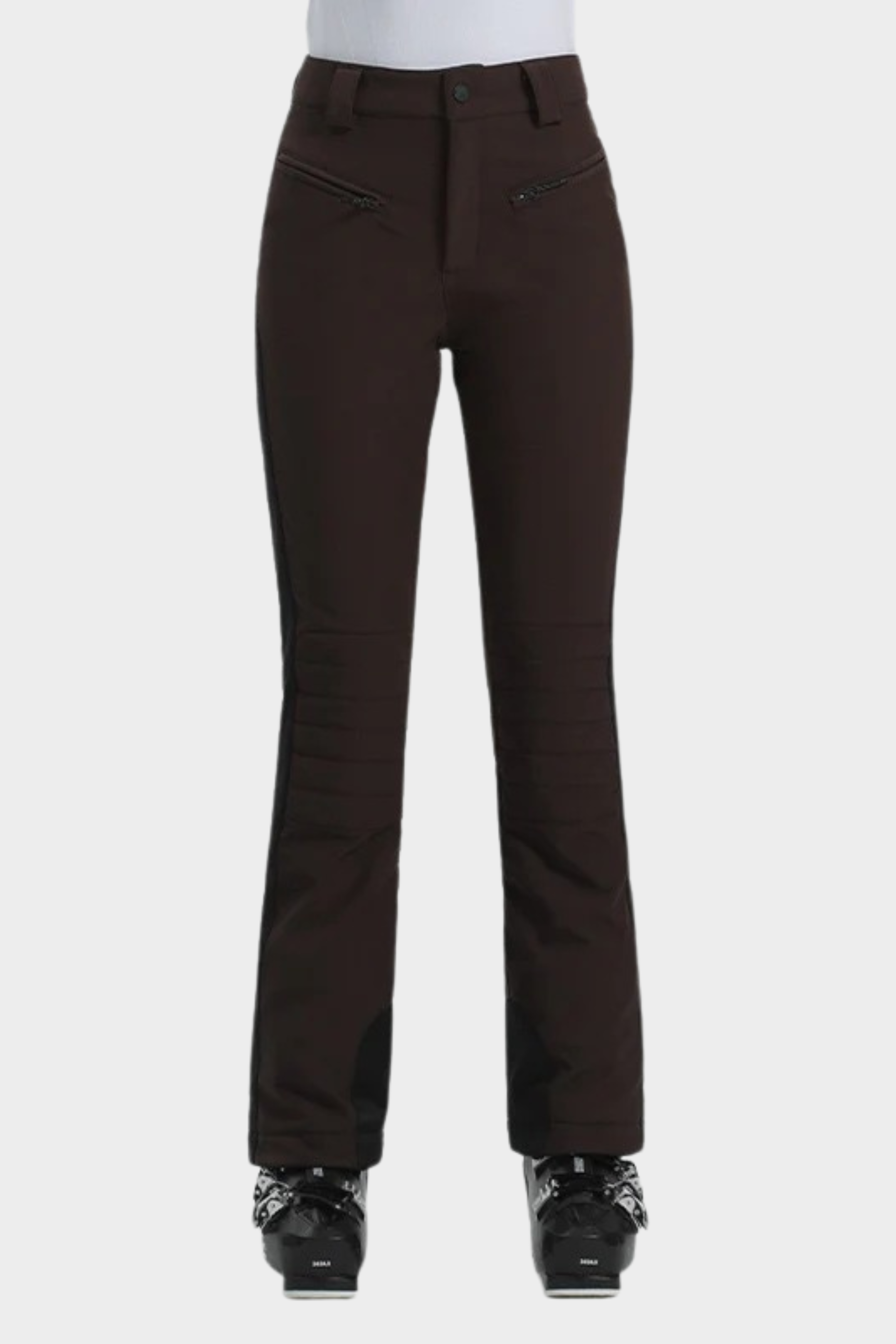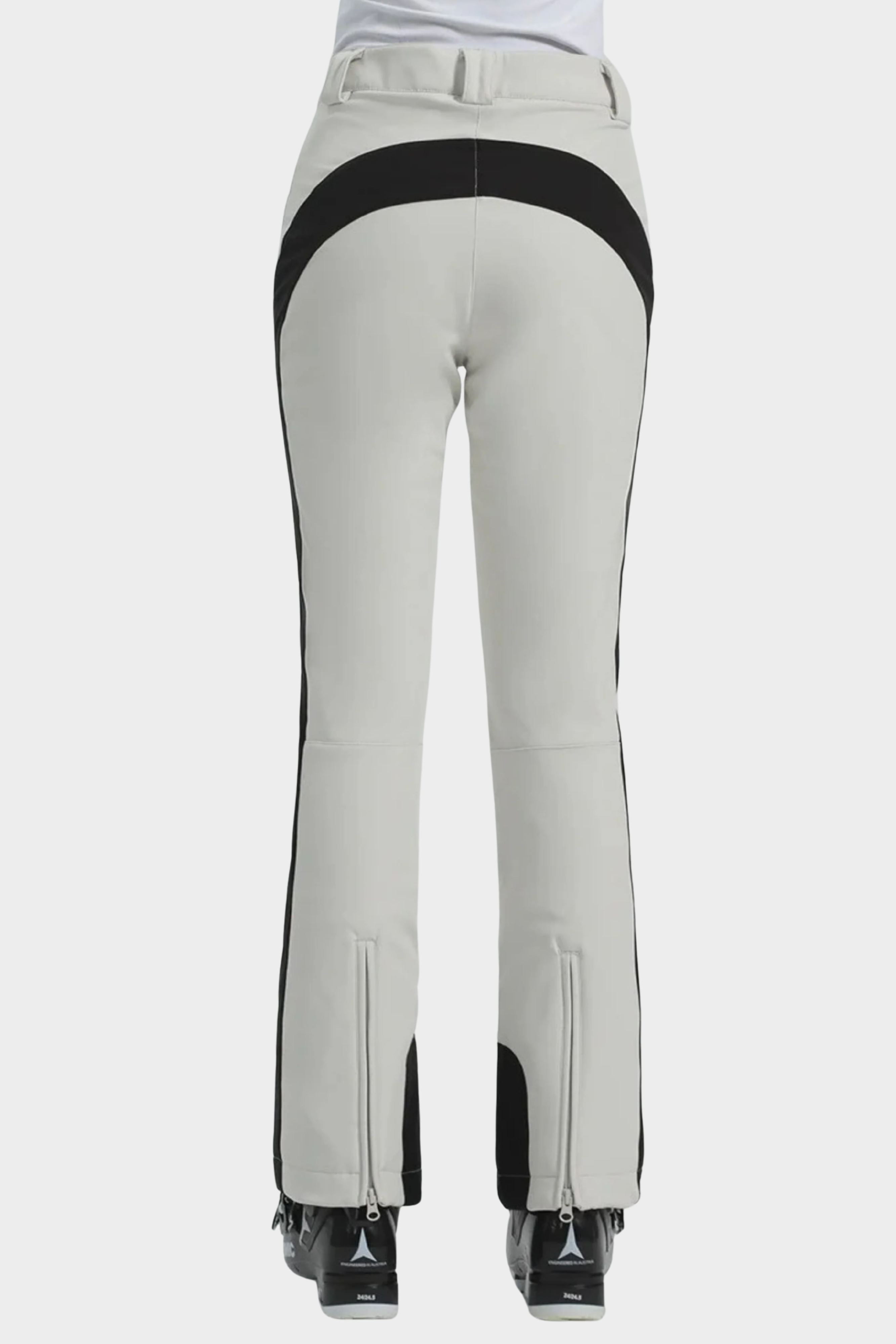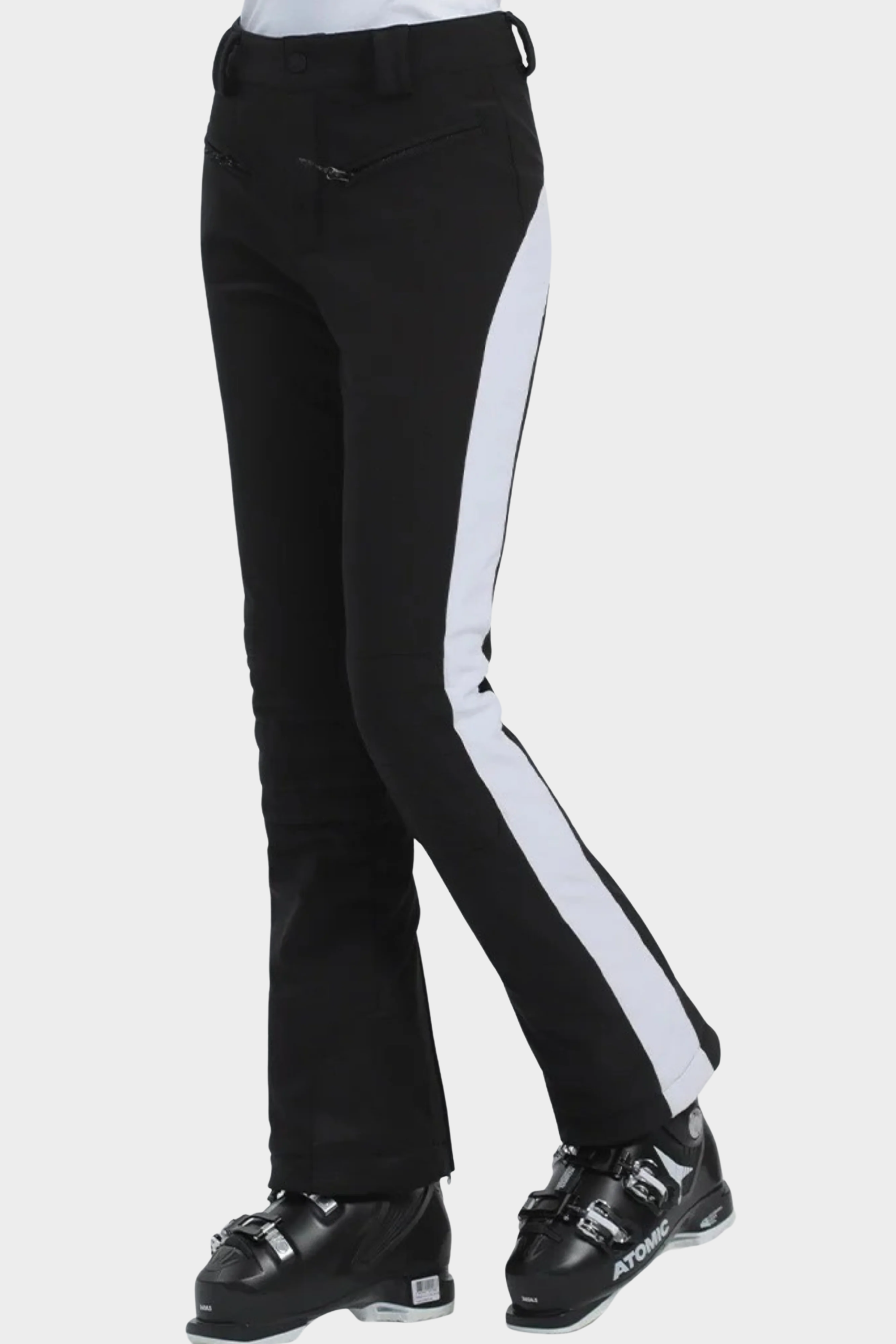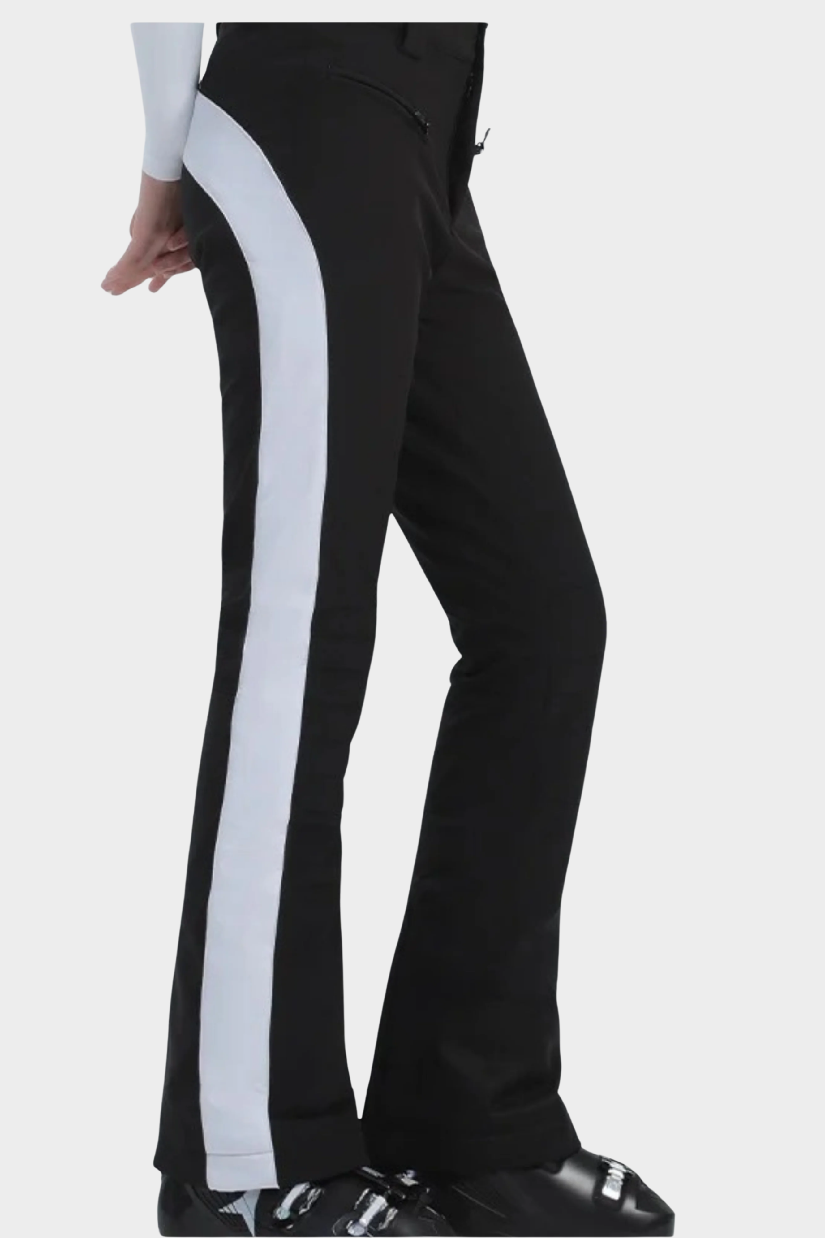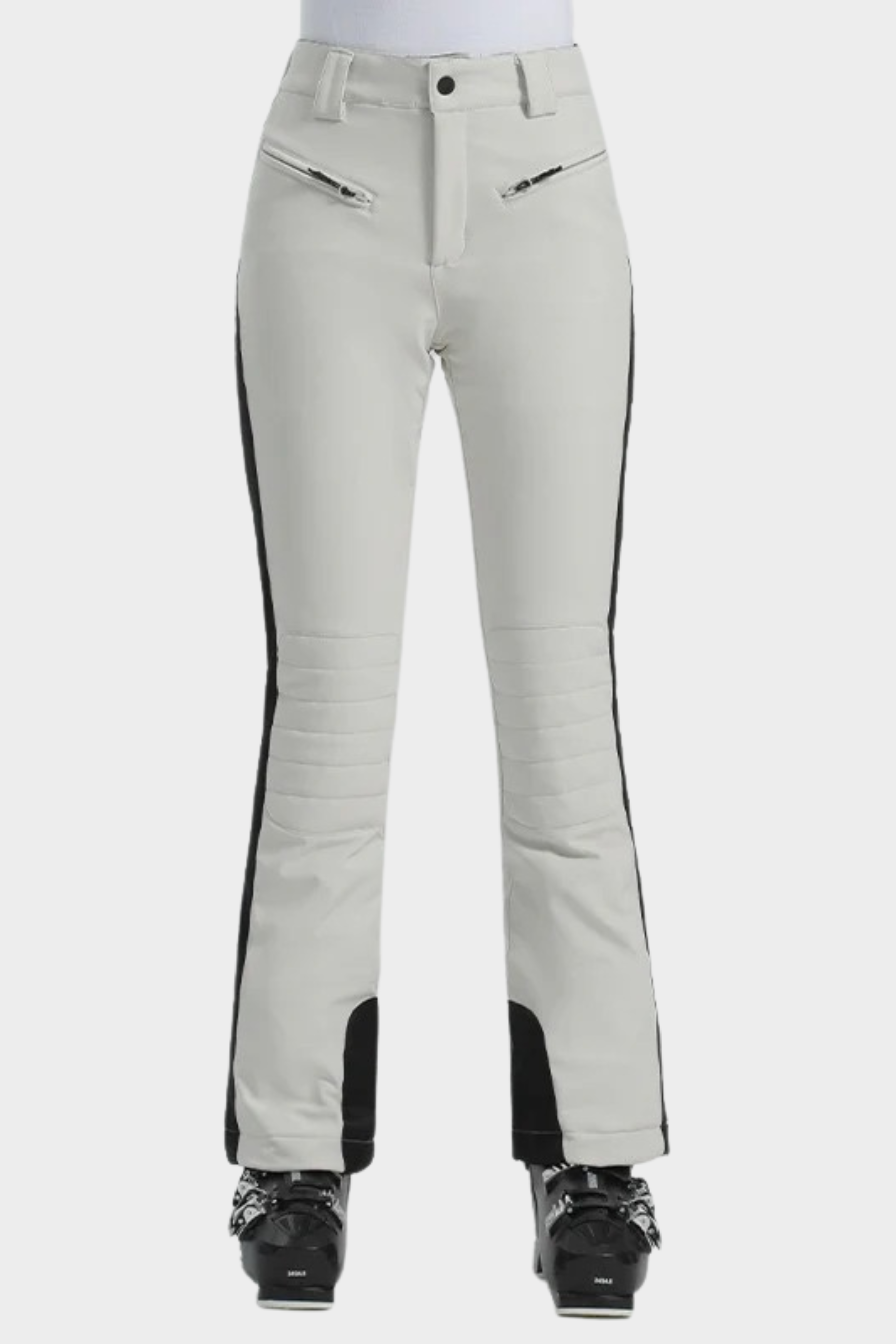 Precision meets clean alpine style in these streamlined ski pants, cut to flatter with a slim, sculpted silhouette and a subtle flared leg. Crafted from a technical stretch fabric that offers insulation, breathability, and weather resistance, they move comfortably while maintaining structure on and off the slopes. The high-rise waist provides support and a smooth fit, while articulated knees and reinforced inner hems enhance durability and performance. Finished with functional zip pockets and a refined, tailored shape, this long-length style transitions effortlessly from ski runs to après-ski settings.