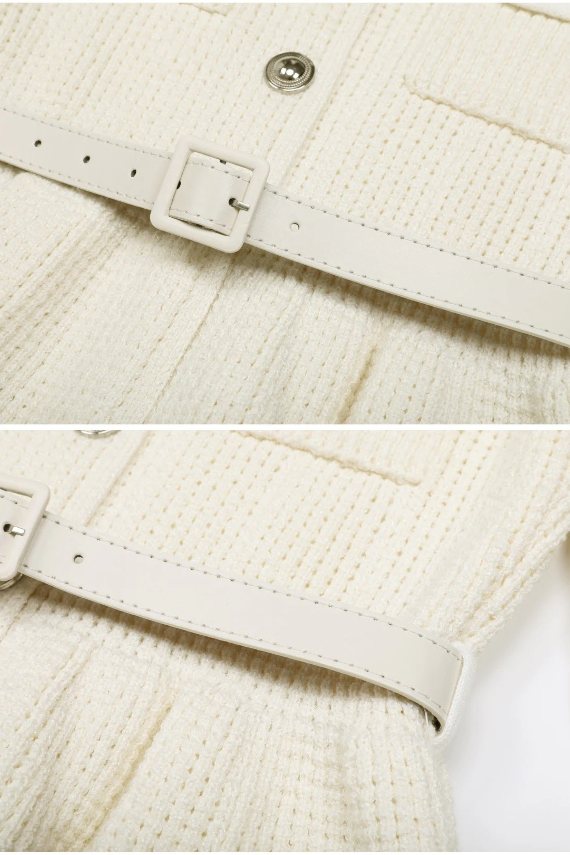 Textured Knitted Peplum Cardigan and High-Waist Skirt Set with Belt