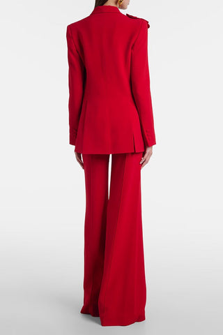 Floral Detail Tailored Suit Set – Structured Blazer & Wide Leg Pants