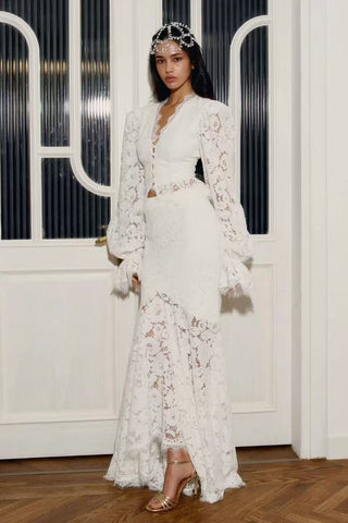 Long-Sleeve Structured Crepe Blazer & Pleated Mesh Skirt Set – Tailored Design