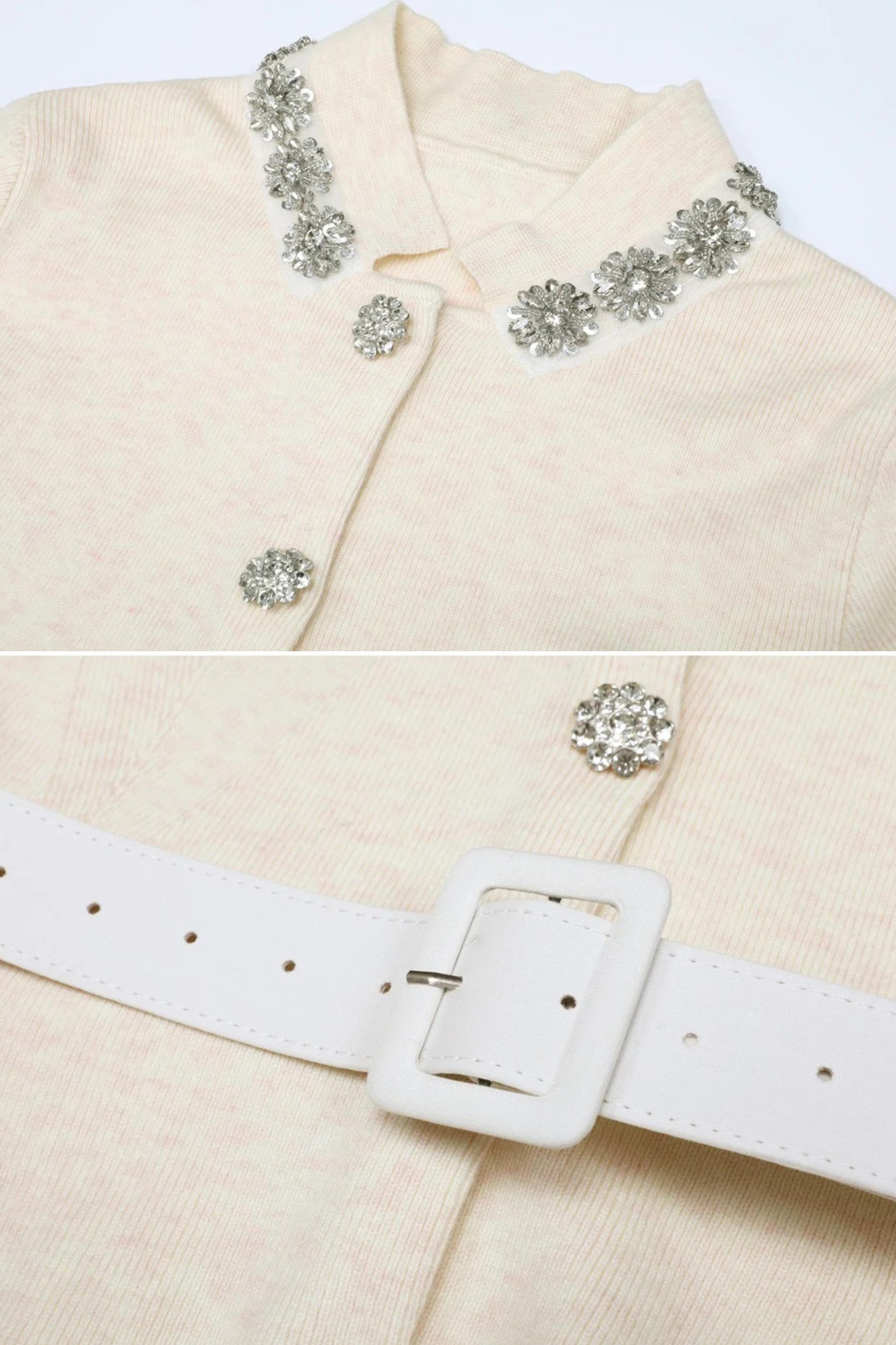 Embellished Collar Knit Top & Midi Skirt Set