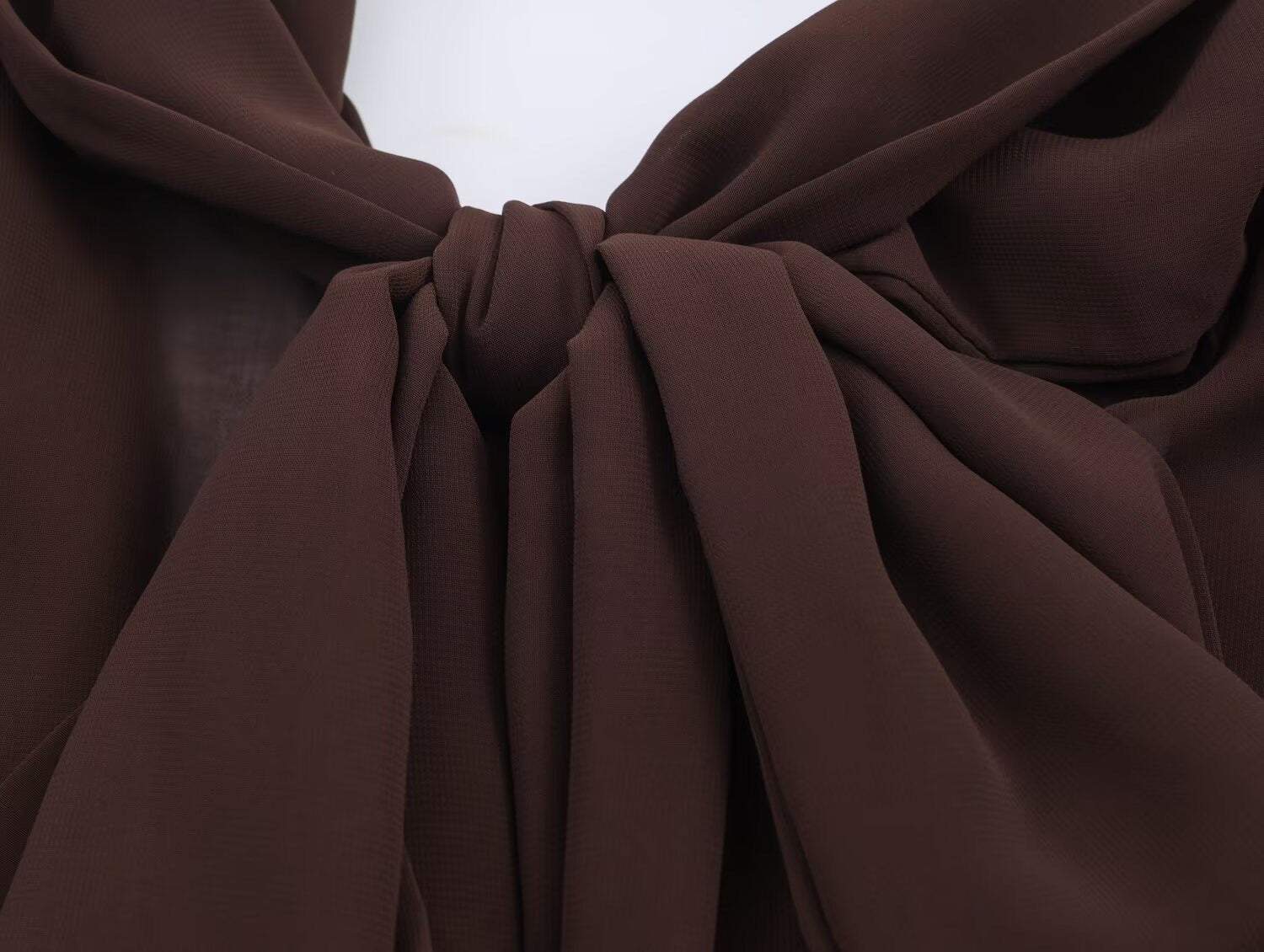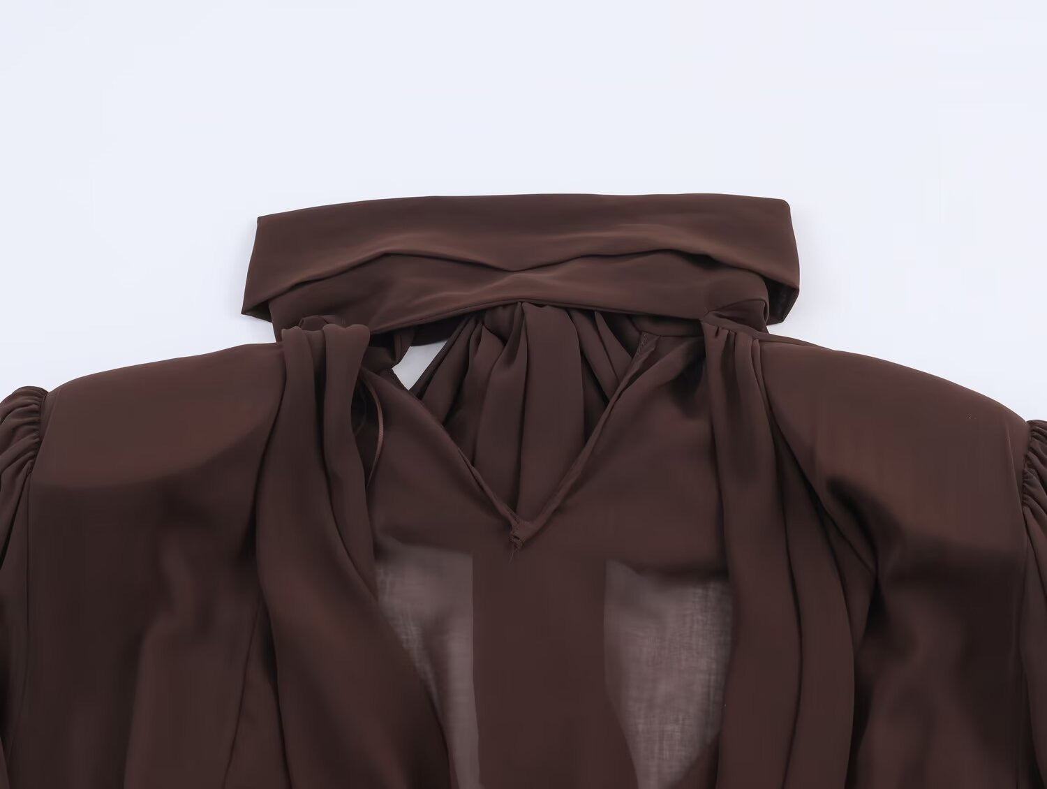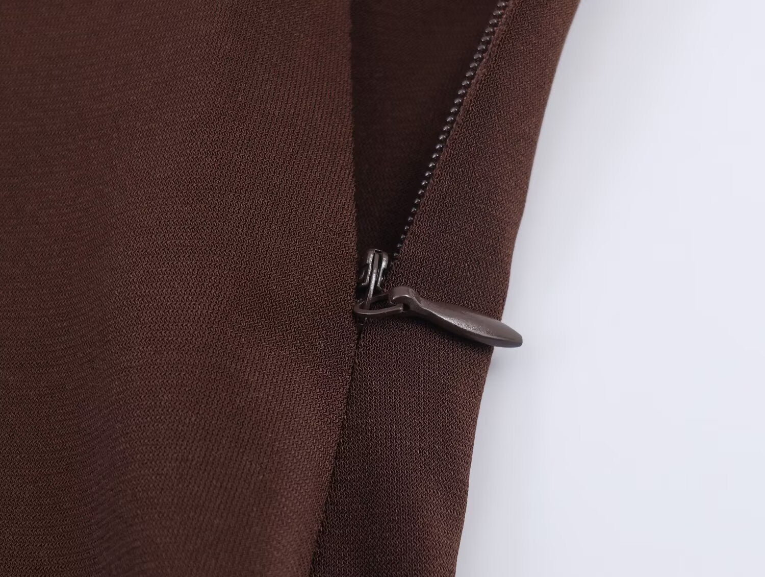 The tie-neck detail adds a feminine, elevated touch, while the fitted waist enhances the overall structure. Finished with a concealed back zipper for a clean look, this dress transitions effortlessly from evening occasions to polished events.