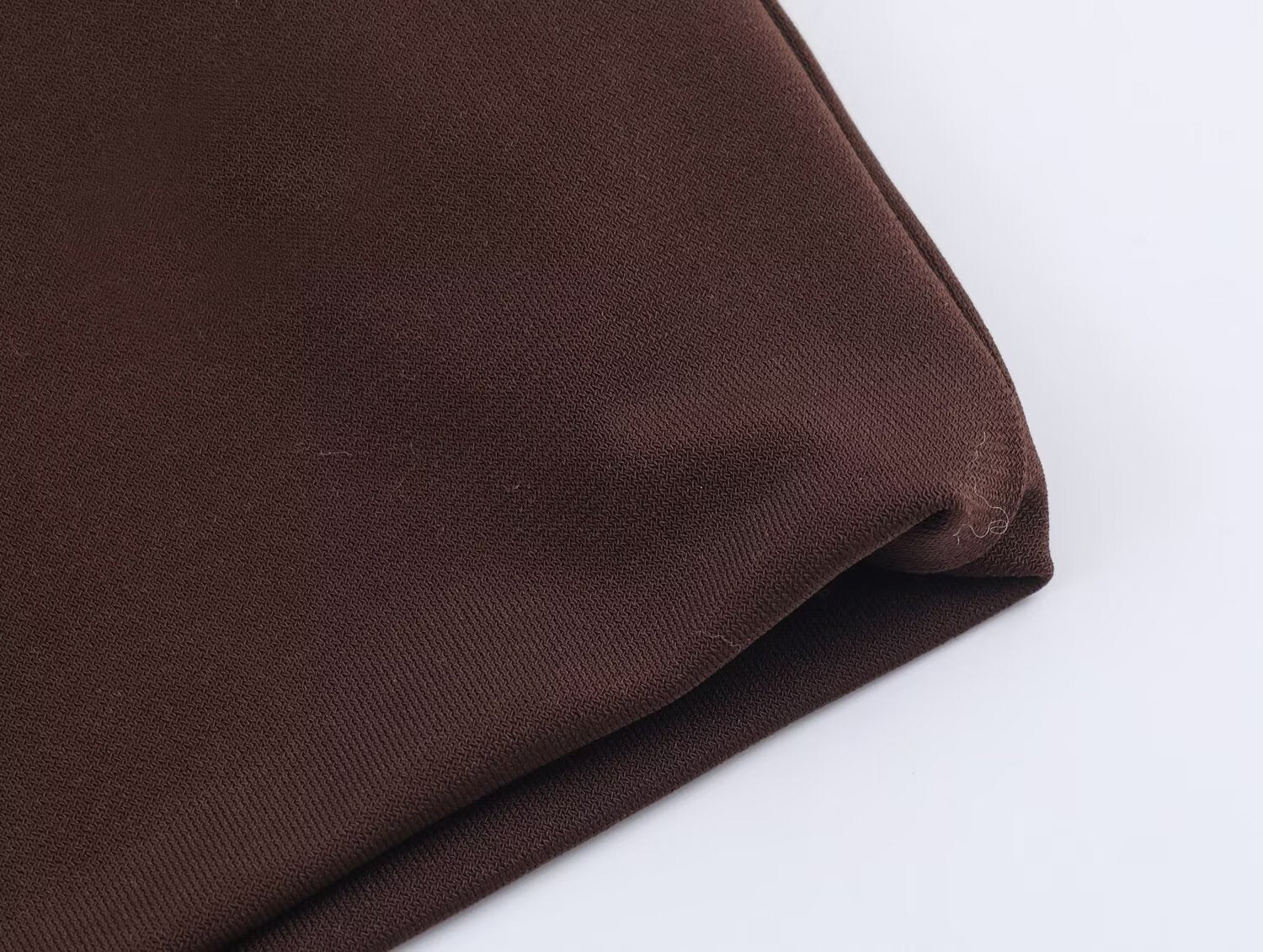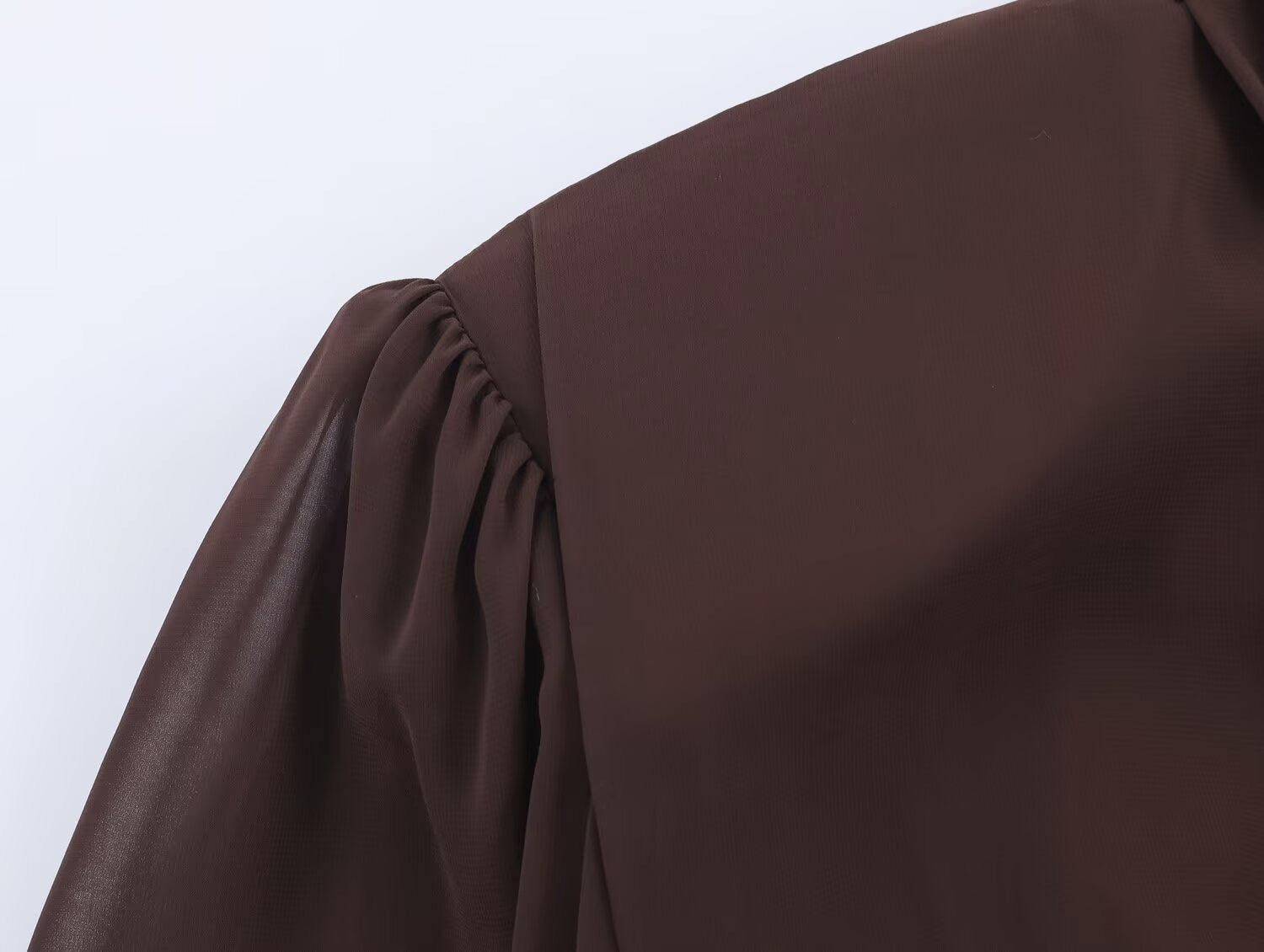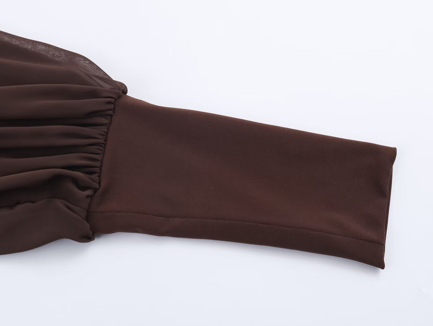 This refined mini dress is crafted from a smooth woven fabric that holds its shape beautifully while offering a flattering, tailored fit. Designed with long sleeves and softly gathered shoulders, it creates an elegant silhouette with subtle volume through the arms.