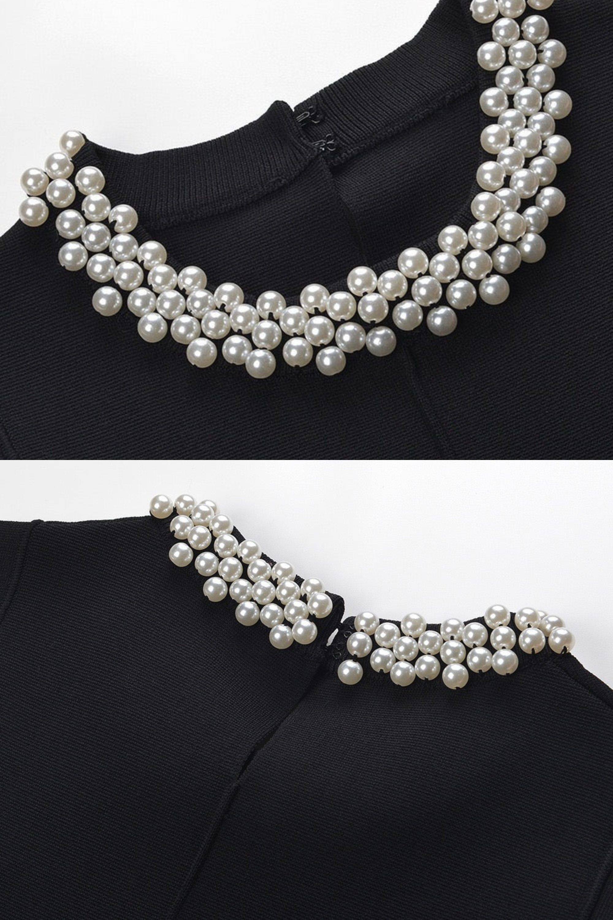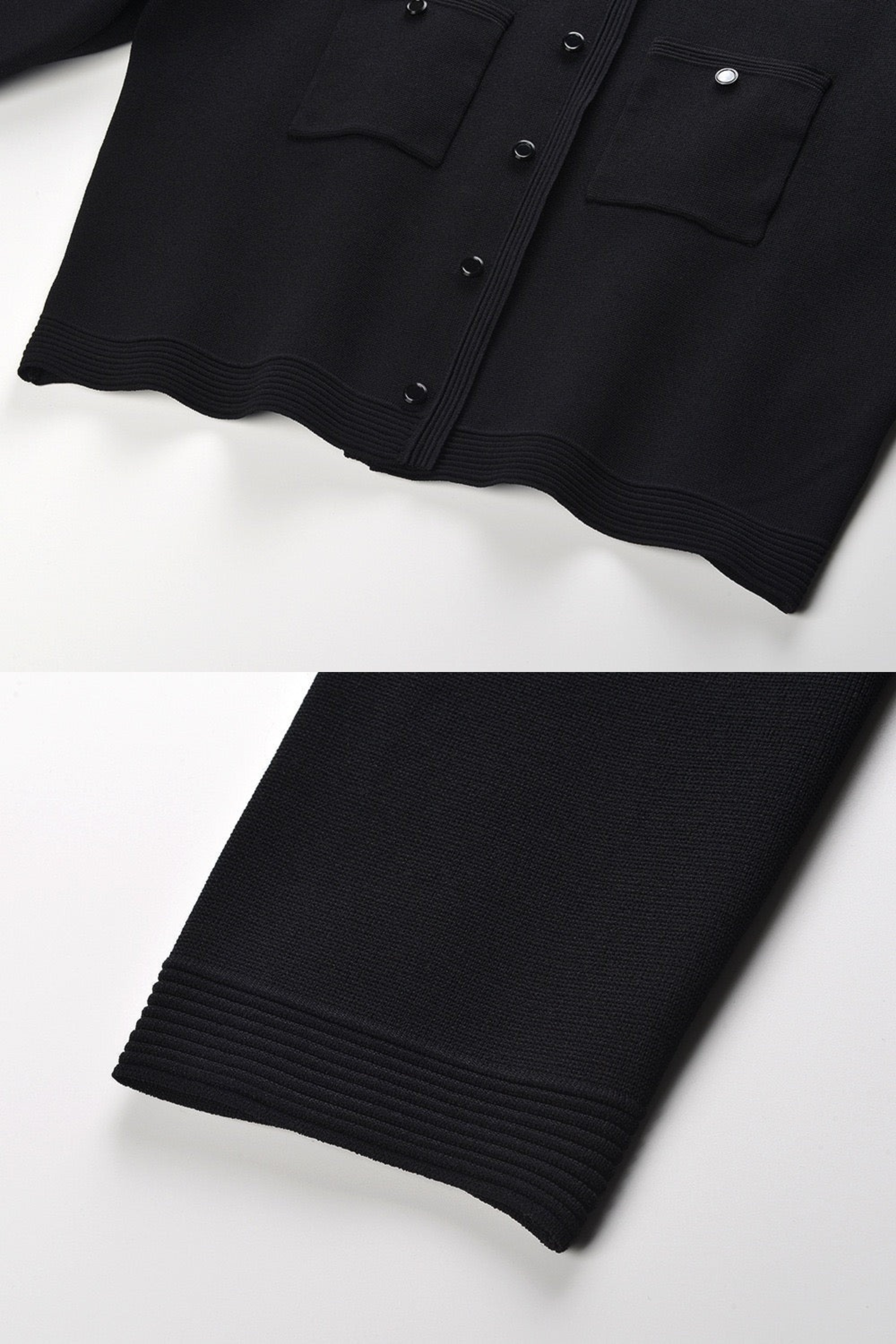 A refined knit cardigan featuring a beautifully hand-embellished pearl neckline that adds instant elegance to any outfit. Designed with a soft ribbed texture, long sleeves, and a clean cropped silhouette, this piece blends comfort with a polished finish. Easy to style for dinners, events, or elevated everyday looks.