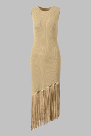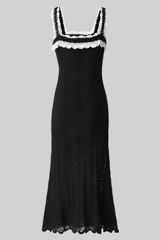 Short Sleeve Knitted Long Dress with Inner Slip – Flattering Fit & Button Detail