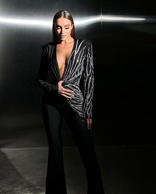 Gray Knitted V-Neck Sweater Comfy Set with Wide-Leg Pants (without Scarf)